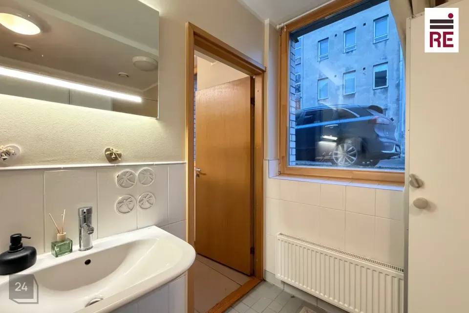 Ruumidesse on eraldi sissepääs tänava tasapinnalt hoone küljelt ning ka läbi hoone trepikoja.
