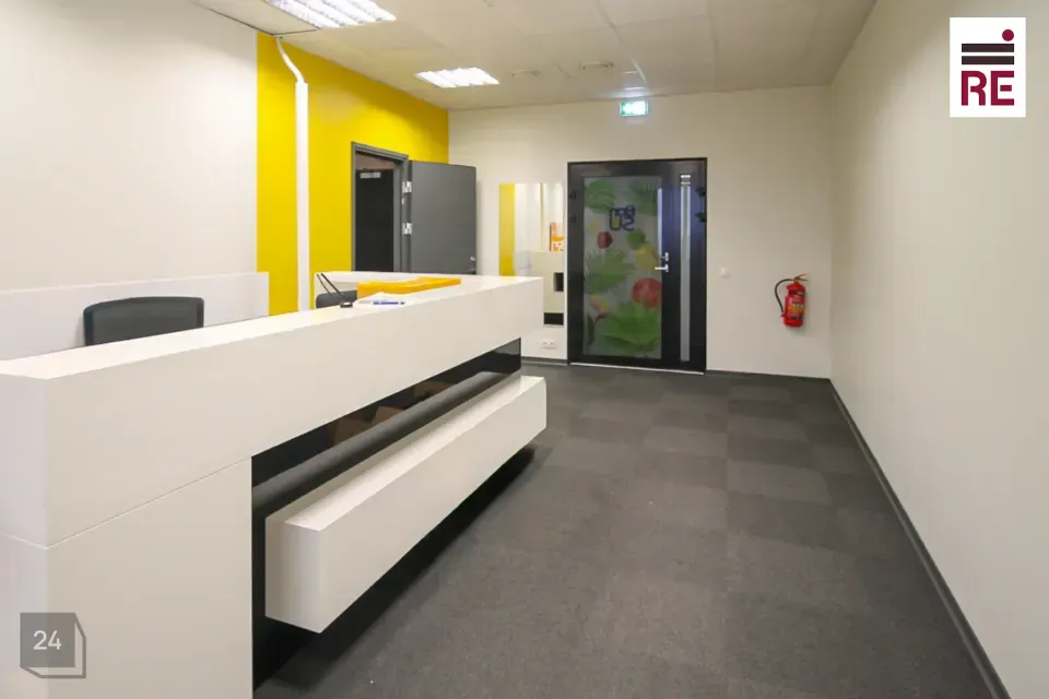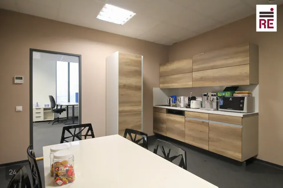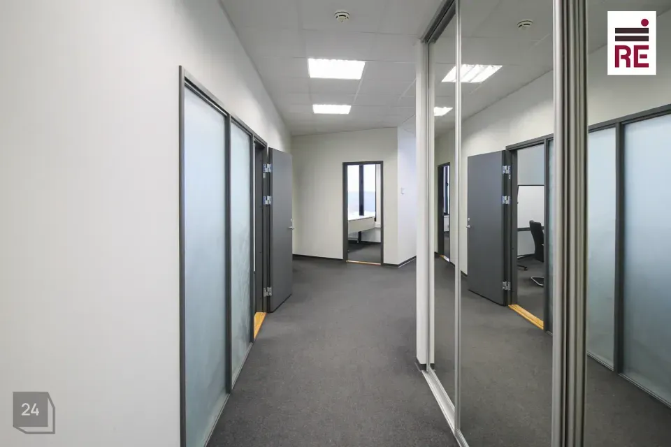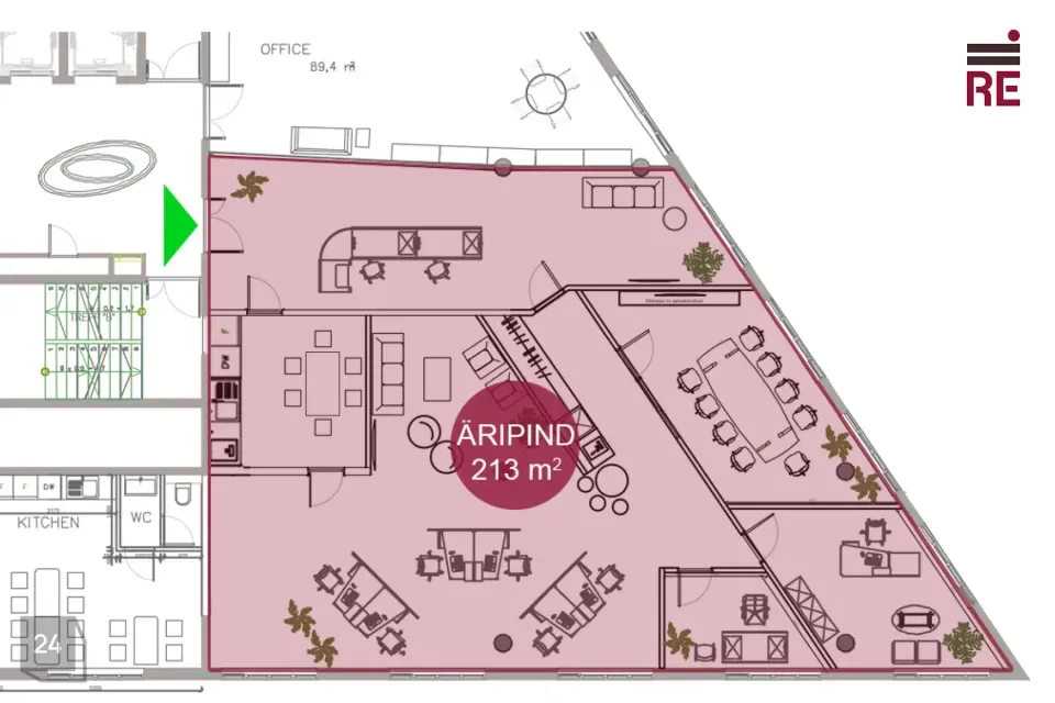 Pinnal on avar vastuvõtuala, üks suurem avatud tööala 8-12 töökohaga, üks väiksem ja üks suurem kabinet, suur ilusa vaatega nõupidamisteruum, sisseehitatud garderoobikapid ja puhkeruum köögi ning väikse einestamisalaga.