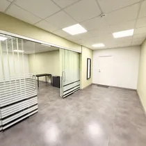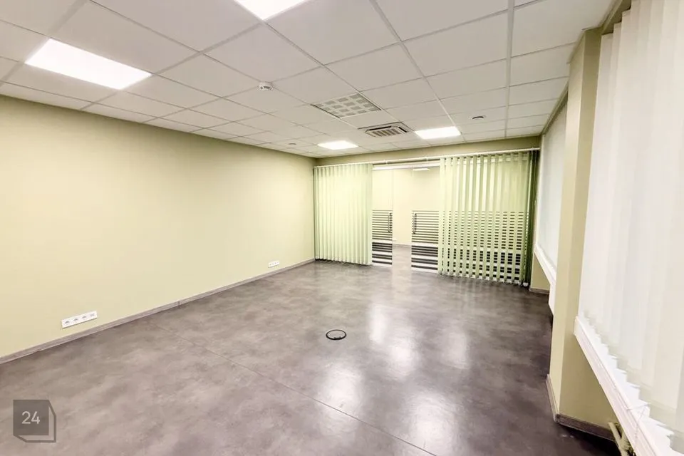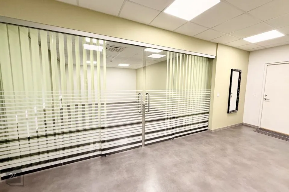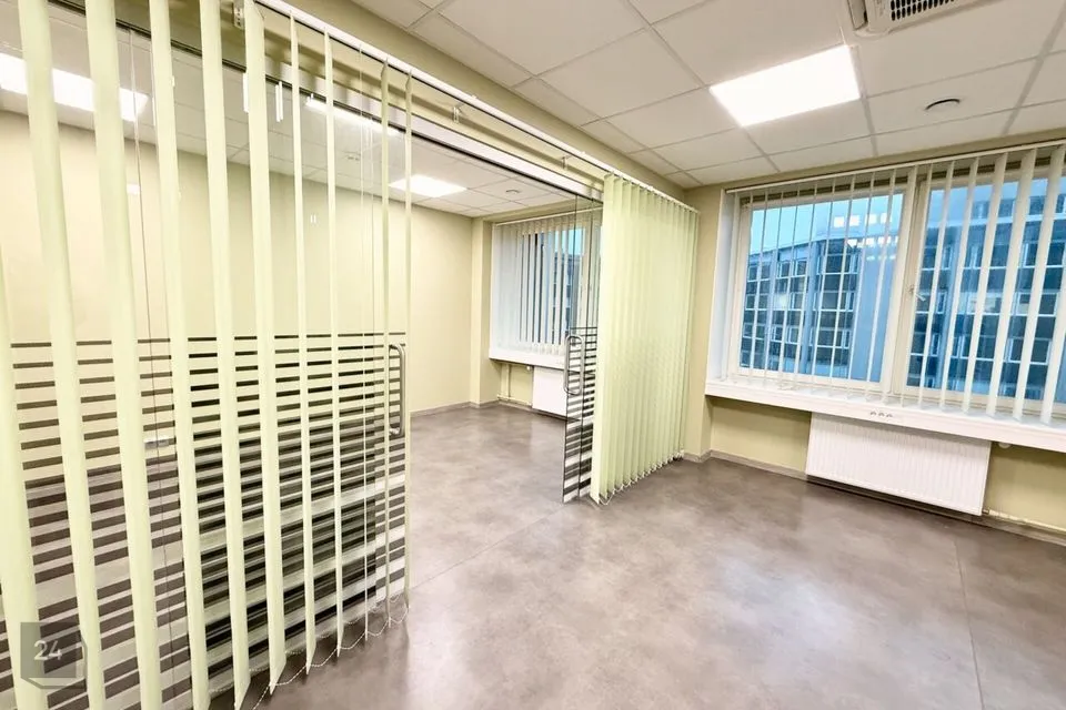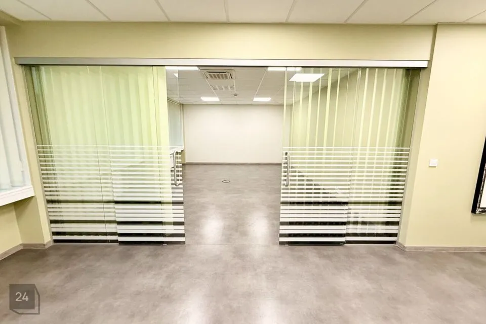 Ruum koosneb kahest eraldi kabinetist, mida eraldab klaassein koos klaasist lükanduksega, pakkudes head tasakaalu avatud tööala ja privaatsuse vahel. Aknad on avatavad ning avanevad Narva maantee poole.
