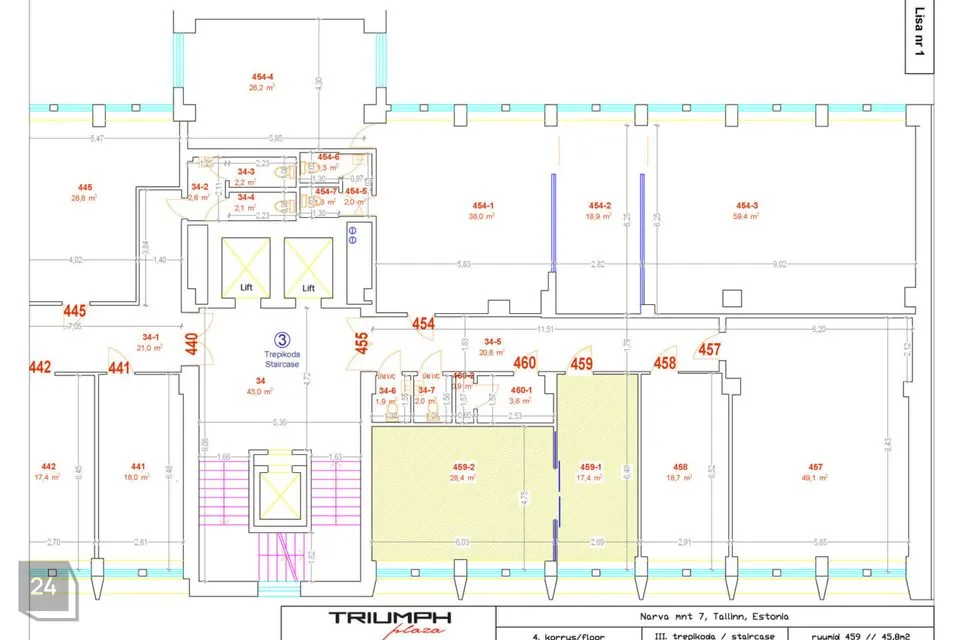 Otse omanikult on üürile anda valgusküllane ja funktsionaalne bürooruum suurusega 45,8 m², mis asub Narva mnt 7 hoone 4. korrusel esinduslikus Triumph Plaza ärihoones.