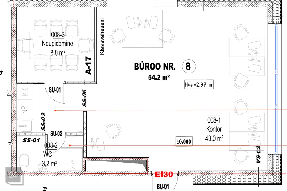 Üürile anda on esimesel korrusel asetsevad tänavapoolse vaatega büroopinnad suurusega 51,5 m²- 89,9 m² üürihinnaga 14-15 EUR/ m².