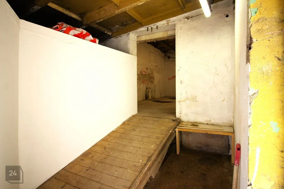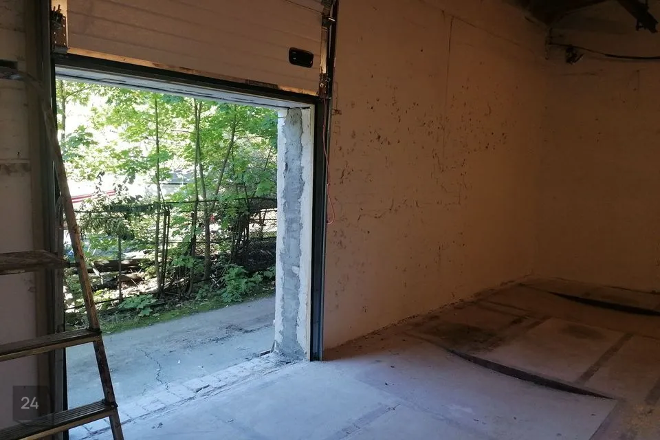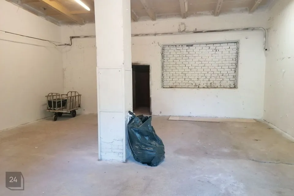 This rental space is suitable for warehouse and production purposes. The room consists of a storage room and an office room. The rental space is located on the first floor, with a separate entrance. A modern sliding door is installed for loading goods. The door is one meter above ground level, so it is not suitable for an auto repair workshop but is good for warehouse or production space. The production area has a concrete floor. Heating, sewerage, and water can be brought into the room.