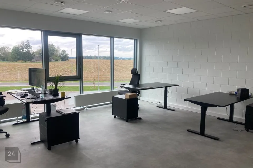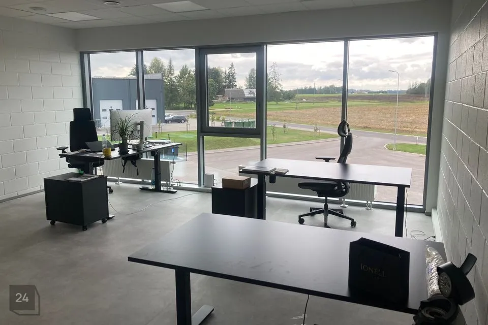 Büroo 70 m2 läbi kahe korruse, klaas fassaadiga, vaatega sissesõidu suunas.
