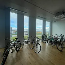 Ruumis on ühtse juhtimisega radiaatorküte (linna keskküte) koos jahutusega (fan-coilid laes).