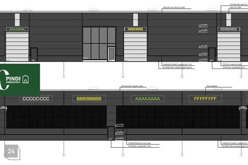 4. Lao- ja tootmisruumide kõrgus on 7 m;