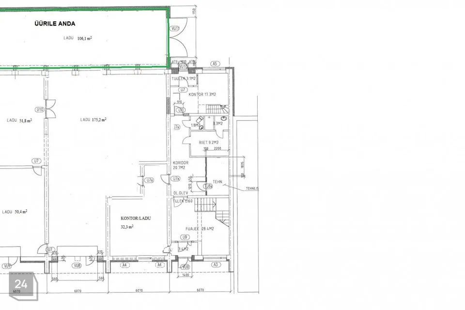 Tegemist on 1970. aastal ehitatud kahekorruselise renoveeritud hoonega. Üürile antakse esimesel korrusel paiknev lao-, teenindus või tootmisruum, üldpinnaga 106,1 m2.