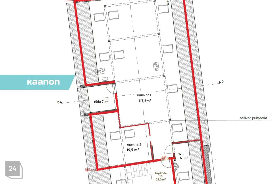 Planeeringult koosneb äripind avarast, 117,5 m² suurusest põhiruumist ning 19,5 m² suurusest eraldiseisvast lisaruumist, mis sobib suurepäraselt näiteks nõupidamisteks või eraldi kabinetiks. Siin kohtuvad ajalooline atmosfäär ja kaasaegne mugavus, luues inspireeriva töökeskkonna, mida hindavad nii meeskonnaliikmed kui ka külastajad.