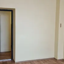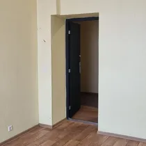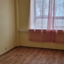 Ruum on valgusküllane, aken vahetatud, seinad värvitud, PVC kattega põrand ja kõrge lagi.