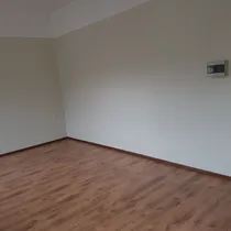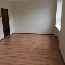 Ruum on valgusküllane, aken vahetatud, seinad värvitud, PVC kattega põrand ja kõrge lagi.