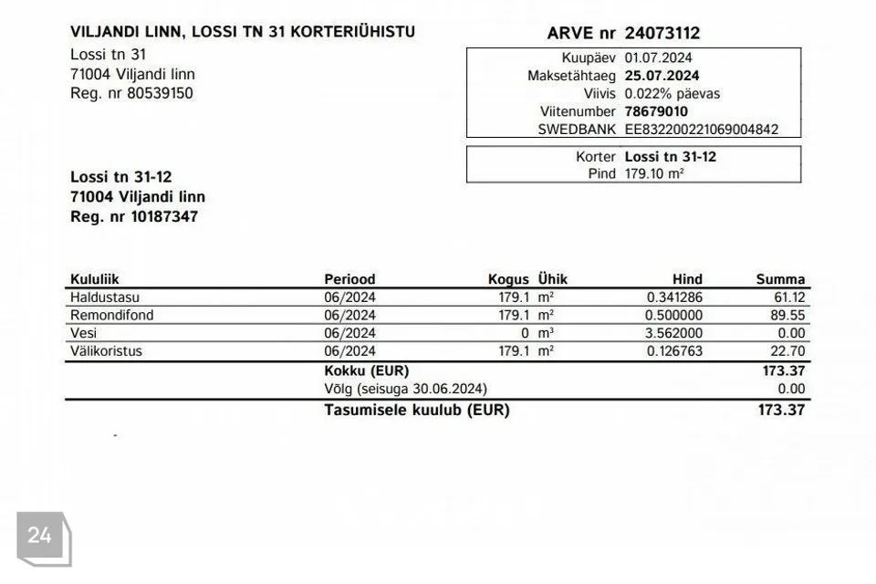 Lisaks tuleb tasuda ruumi kasutamisega seotud kõrvalkulud (elekter, vesi, kanalisatsioon, haldustasu, remondifond), mis on kajastatud korteriühistu arvel. Üürniku kohustus on sõlmida enda nimele antud pinna osas elektritarbimisega seotud lepingud otse pakkujatega. Eraldi on üürnikul ise enda kulul võimalik sõlmida interneti-sideteenuseleping ja valveteenuseleping ja vajadusel lisaks prügiveoleping.
