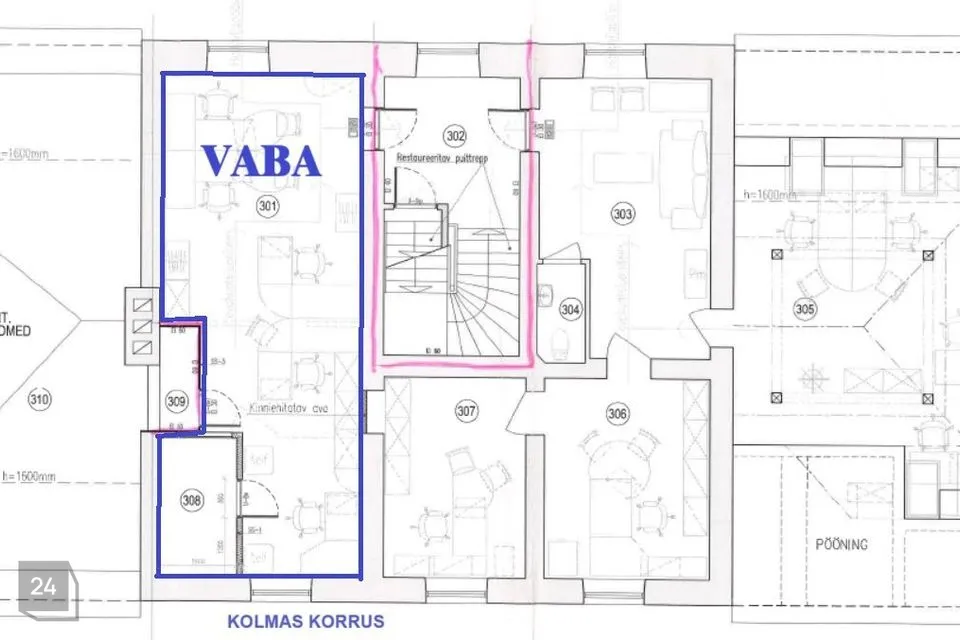Võimalus kogu korrus muuta omale sobivaks, kasutada ruume enda tegevuseks. Omanik on nõus ümberehitust teostama vastavalt kliendi vajadusele.