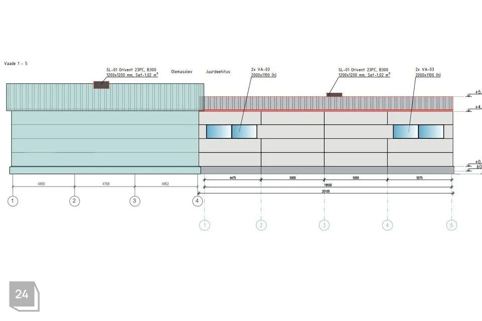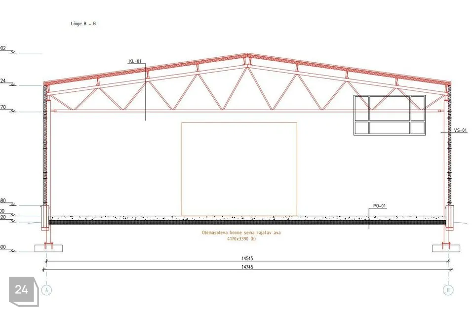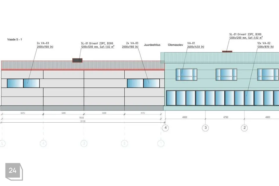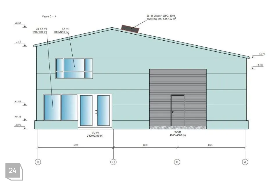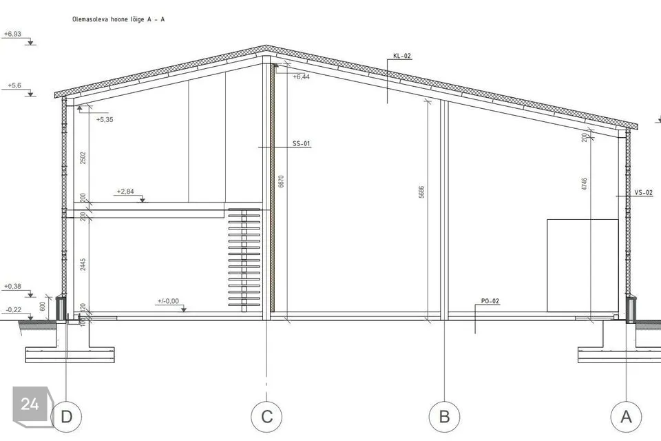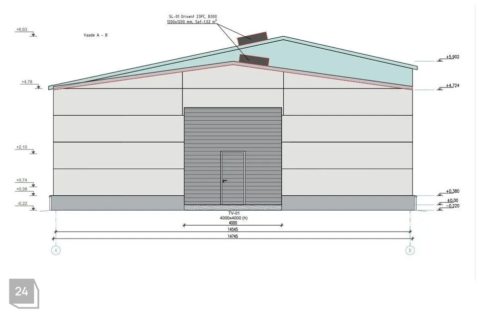 - kaks 4x4m tõstust välisseintes, üks ustest ühel pool hoonet ja teine teisel pool hoonet