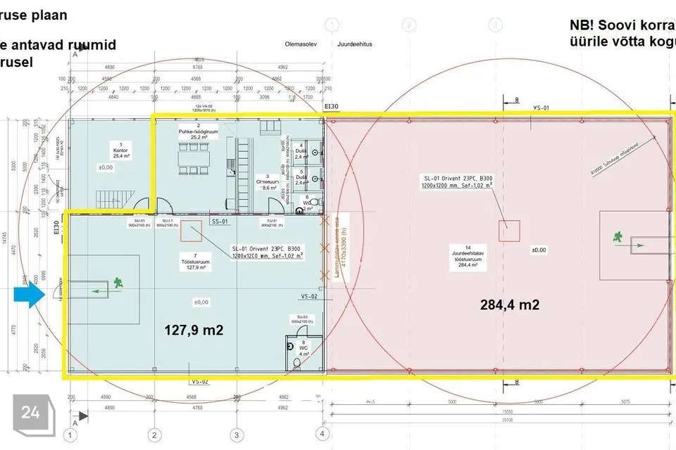 - kaks omavahel ühendatud suuremat tootmis-, laopinda (284,4m²