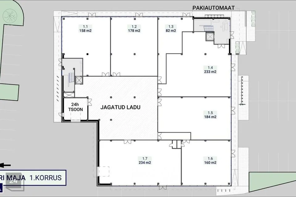 *Hoone ees ja külgedel on palju parkimiskohti nii üürnikele kui klientidele