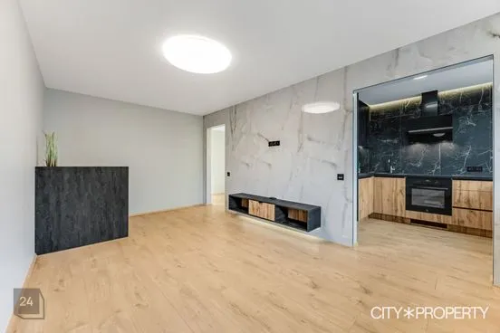 A stylish and bright apartment has come up for sale right in the city center. The apartment offers a spacious view of the city, which can be enjoyed through large windows, where the sun shines in the morning and the city lights shine in the evening. The apartment has an elegant