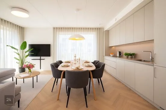 Spacious and light-filled three-room apartment for rent in Kalamaja, located in a newly completed small apartment building at Soo 24. The building has only four apartments, ensuring a quiet and private living environment. The apartment is situated on two levels, with one