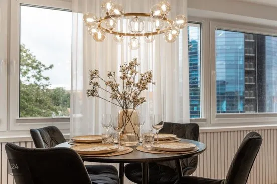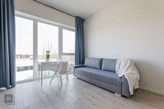 For rent: Studio apartment with high ceilings in Studio 365 building. The apartment is located on the last 5th floor of the building, which ensures a pleasantly quiet and private living experience. The building has an elevator. The apartment is comfortably light-filled,