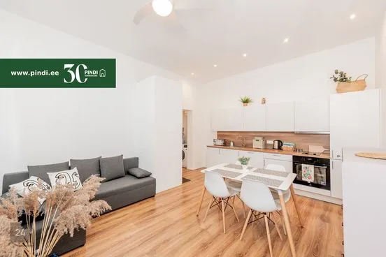Rent out a renovated apartment on Videviku Street in Raeküla district for year-round use. APARTMENT LAYOUT: 2 rooms with a total area of 30.9 m² - open floor plan Combined toilet and shower room, open kitchen, sleeping area. Apartment is furnished. ADDITIONAL VALUES: