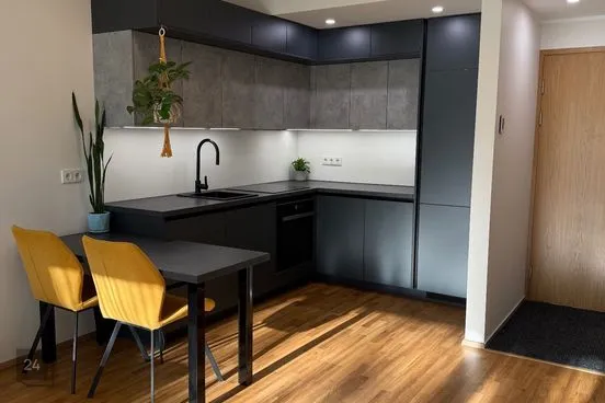 The living area of the apartment located on the 5th floor is 65.8 m², consisting of an entrance hall, kitchen, living room, two separate bedrooms, and a toilet and bathroom. Additionally, the apartment includes a balcony.