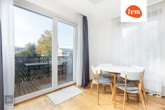 Recently renovated, clean, very well-maintained quiet downtown apartment. Decent neighbors. Stove, fireplace, air-to-air heat pump. Firewood can be stored in the woodshed. Car can be parked in front of the house. The apartment has three bedrooms and a kitchen, with a fireplace