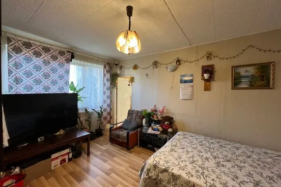 The apartment has started renovation, slightly changed layout (additional partition), double-glazed windows, partially new electrical wiring, metal door.
