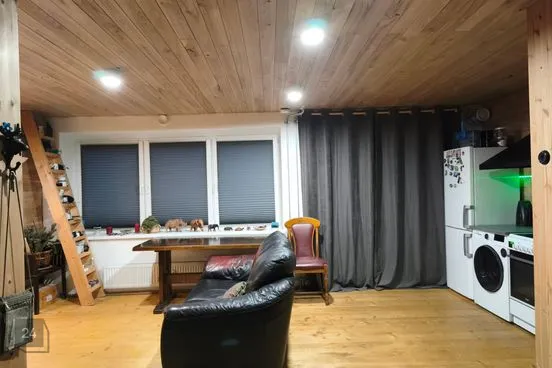 * 2-room apartment, Tallinna mnt 6* Central heating - ventilation with heat recovery* First floor* 43.5 square meters* Rooms throughout the house plan* Open kitchen-living room* Large bedroom* House renovated in 2024* Solar panels in the house* Air-water heat pump* Affordable