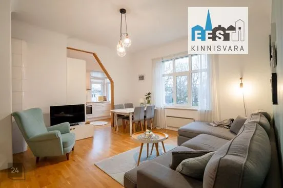 The spacious and light-filled layout includes an entrance hall, living room-kitchen, large bedroom, large bathroom-shower