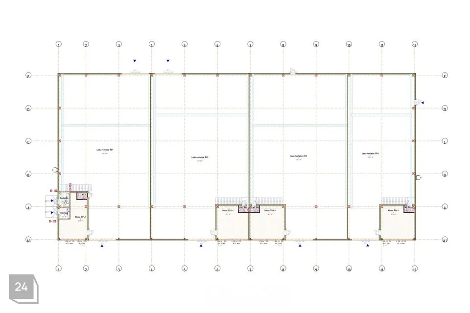 Each unit features an 8 m high production area, along with office and utility rooms spread over two floors.
