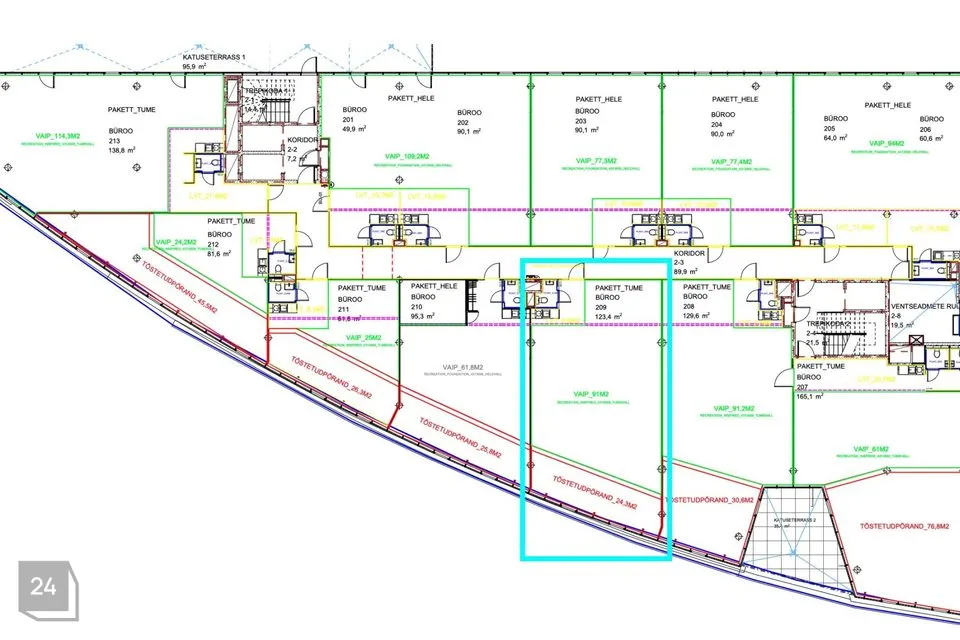 This office space is located on the 2nd floor of the building and has a total area of 123,4 m².