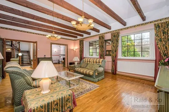 Privately owned large garden house in a valued location in Kakumäe. The spacious outdoor area features a swimming pool, fireplace, children's play area, greenhouse, apple trees, berry and ornamental gardens. The lawn is maintained by a robot. Interior finishing uses natural