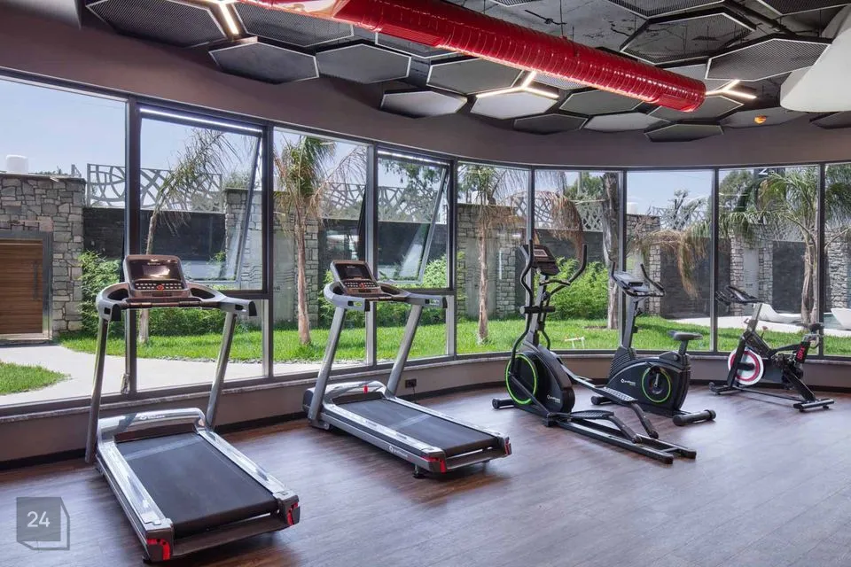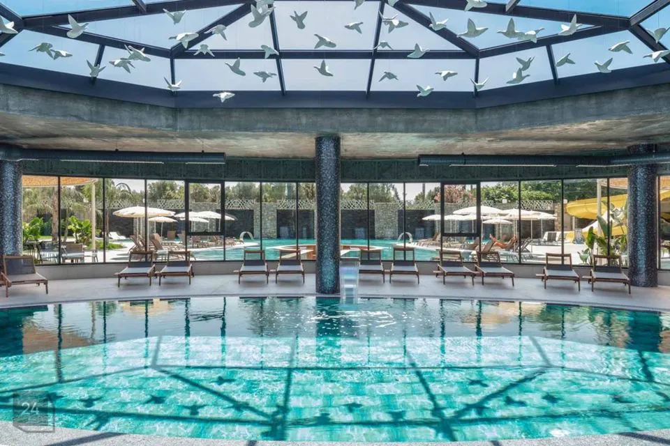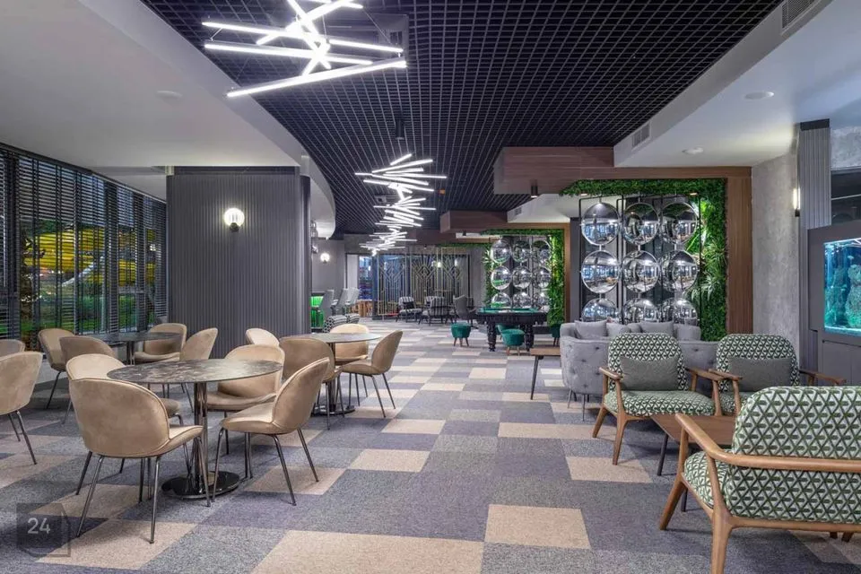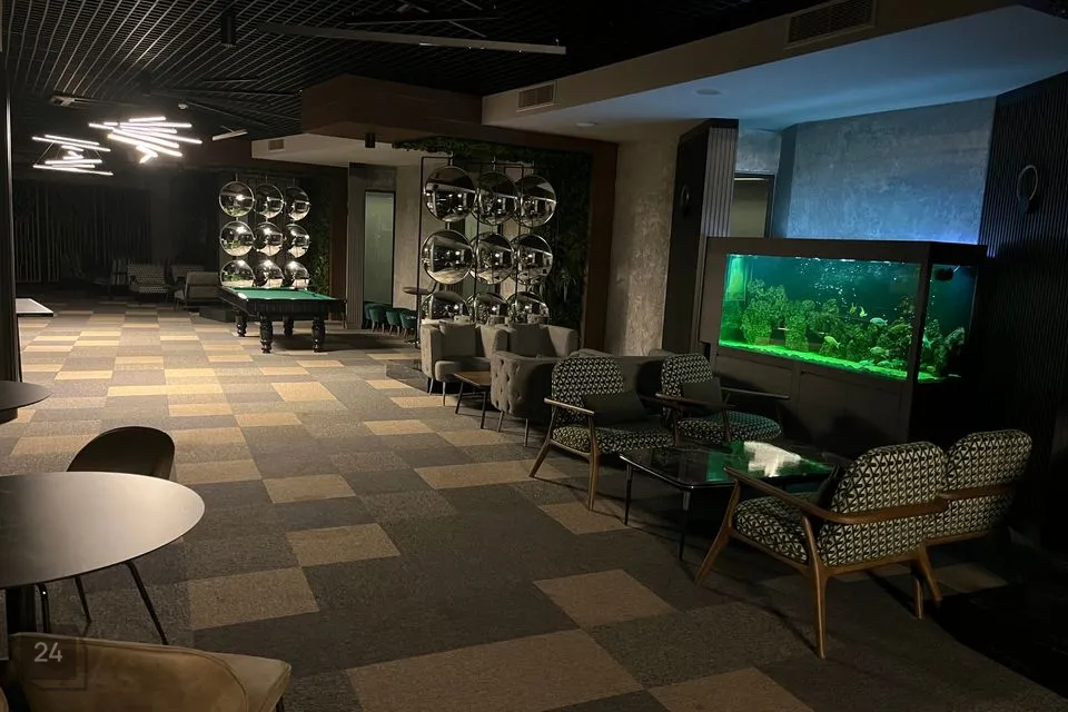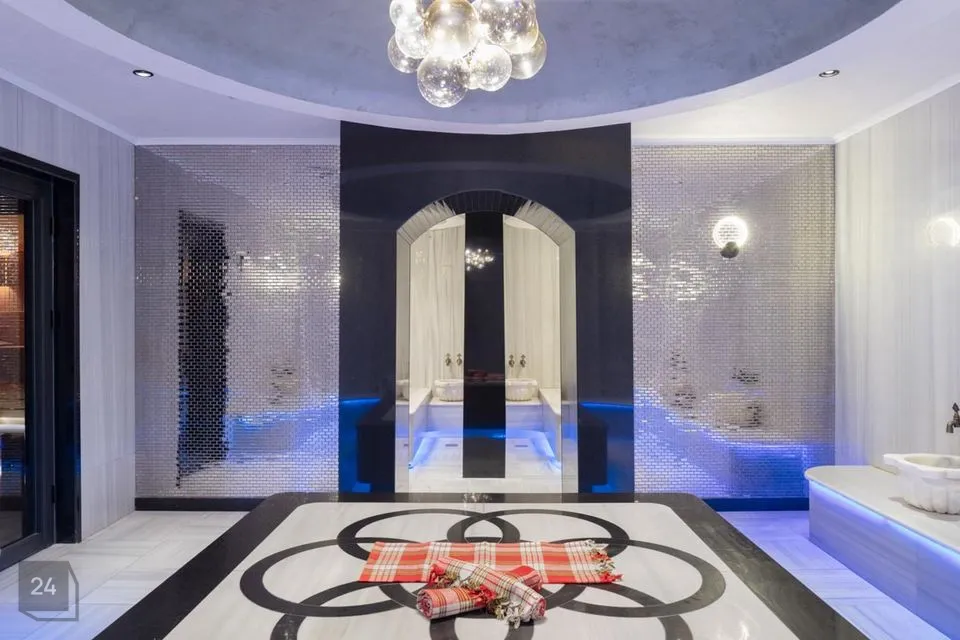 Residents can use an indoor pool, an outdoor pool, various recreation areas, a gym, a lobby with an aquarium and chairs-tables, a cinema-conference room, a children's play area, a pool and ping-pong table, 5 different saunas (Russian, Finnish, steam and salt saunas and a hammam), etc. .