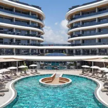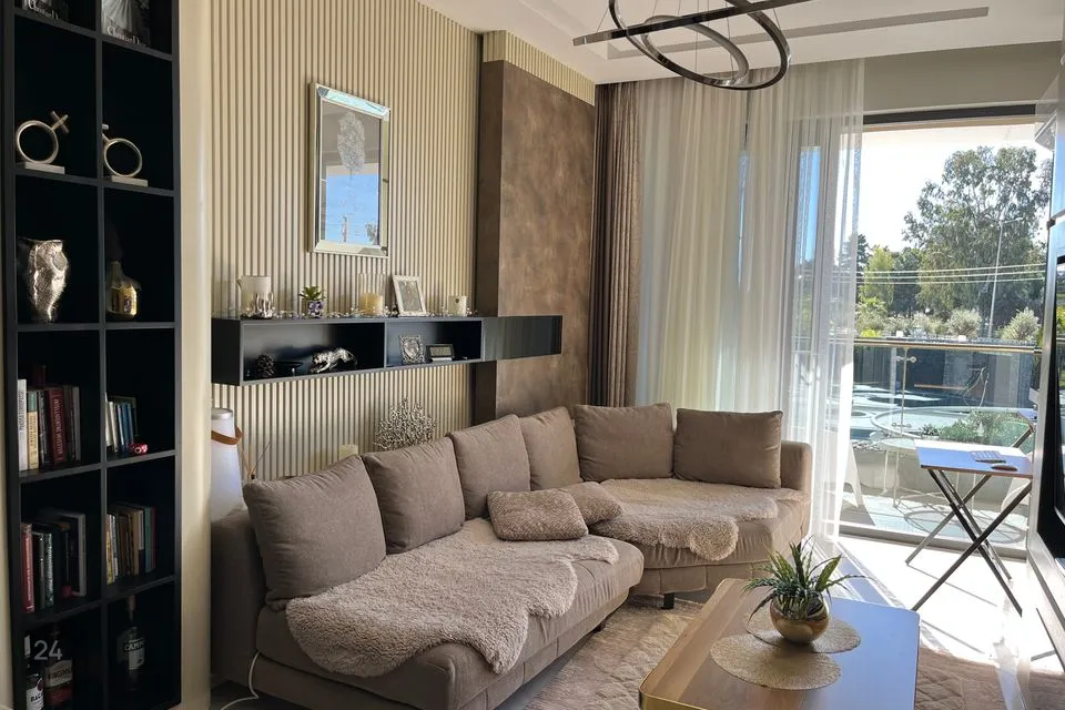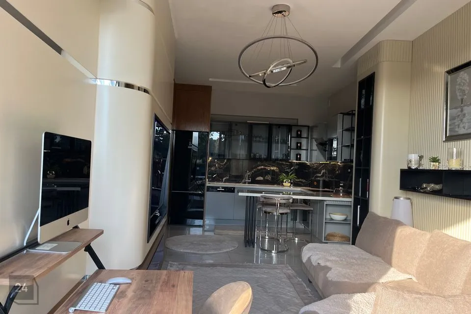 A luxurious, furnished, light-filled, 2-room apartment with a large spacious balcony with a sea view is for sale in the highly rated Kargičak district of Alanya.
