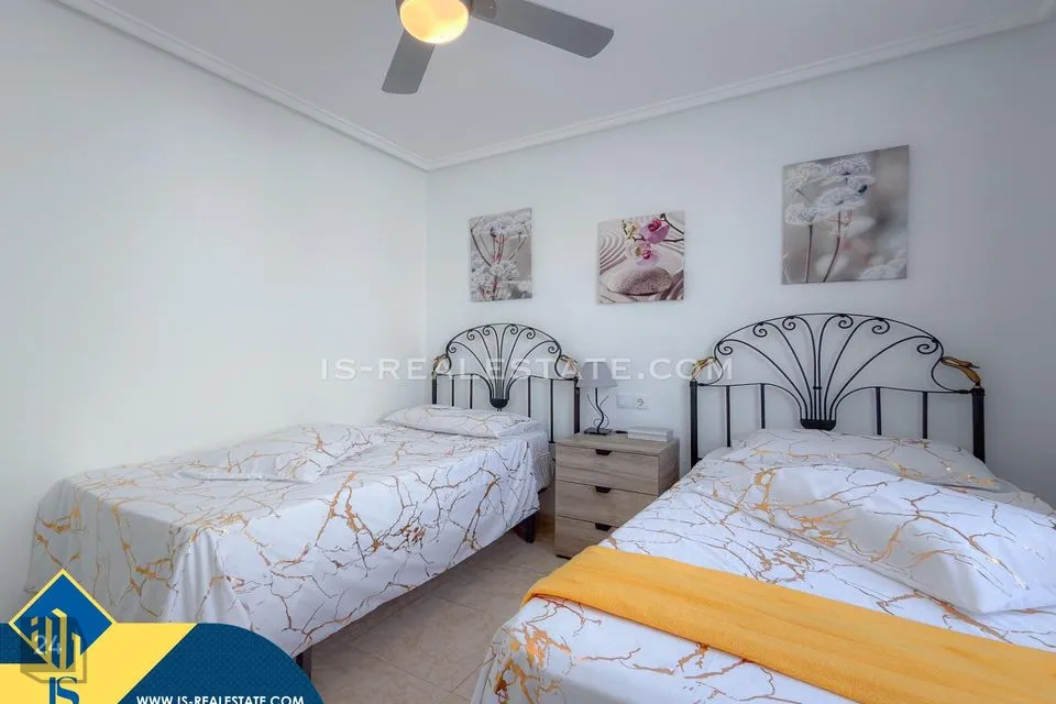 This exceptional apartment is located in the lively city of Torrevieja in the quiet Acequion area. The real estate with 86 m² of built area and 78 m² of useful area has been completely renovated to offer maximum modern comfort. Its south-facing orientation ensures that the rooms are bright throughout the day. The property has two inviting bedrooms and an elegantly designed full bathroom. Additionally, you can enjoy pleasant views from the spacious outdoor terrace, surrounded by trees that add a refreshing touch. Just **140 meters** from the Mediterranean Sea, you can enjoy daily walks along the coast or simply relax under the Spanish sun.