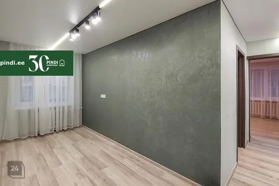 Jauna elektroinstalācija, piekaramie griesti, apgaismojums ar tālvadības pulti.