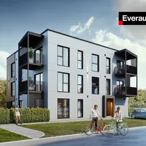 The three-story buildings with an A energy rating (calculated energy efficiency) comprise a total of eight apartments. Ground-floor homes feature large terraces and private yard areas, while second- and third-floor apartments include balconies. Eco-friendly solutions like geothermal heating and apartment-specific ventilation with heat recovery help reduce environmental impact, lower heating costs, and improve living quality. Each apartment comes with an individual energy consumption meter.
