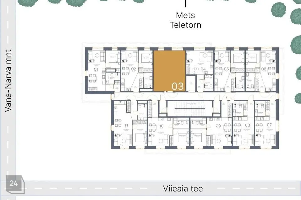 VIIEAIA TOWER is located just 1 km from the Tallinn border, at Viieaia tee 28, Maardu, and is the tallest building in the area. Viieaia tee 28 is 100% commercial land with a purpose as a hotel. The apartments for sale are guest apartments. The building has 11 floors and 110 guest apartments.