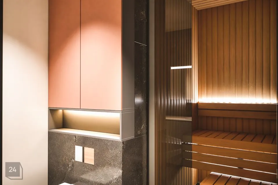 All apartments feature high-quality and durable interior finishing materials. Buyers can choose between three interior design styles. Spaciousness is enhanced by high ceilings and triple-glazed, energy-efficient floor-to-ceiling PVC windows. The floors of the living areas are covered with natural solid wood parquet. The sanitary rooms are equipped with high-quality sanitary ware. The apartments include water-based underfloor heating, heat-recovery ventilation, and cooling readiness.