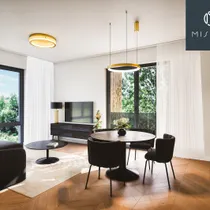 High-quality, durable materials are used in the interior finishes of all apartments. Buyers can choose between three interior design styles. The apartments feel spacious thanks to high ceilings and triple-glazed, energy-efficient floor-to-ceiling PVC windows. The floors of the living areas are covered with natural solid wood parquet. The sanitary rooms are equipped with high-quality sanitary ware. The apartments feature water-based underfloor heating, heat-recovery ventilation, and cooling readiness.