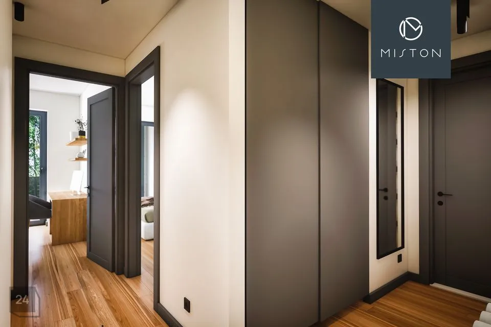 High ceilings and energy-efficient triple-glazed PVC windows add a sense of spaciousness.
