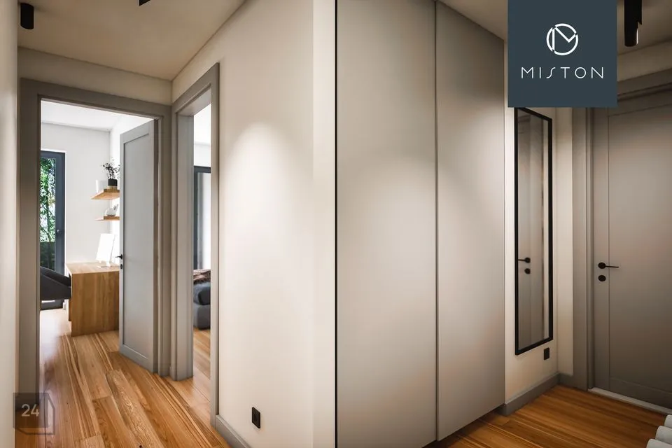 High-quality, long-lasting materials are used for all interiors. Three interior design styles are available for selection. The apartment is made more spacious by high ceilings and triple-glazed, energy-efficient floor-to-ceiling PVC windows. Floors are covered with natural solid wood parquet, and bathrooms are equipped with high-quality sanitary fixtures. Apartments have underfloor heating, heat-recovery ventilation, and cooling readiness. Storage rooms are located on the building’s -1 floor.