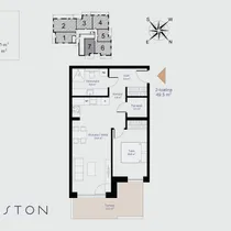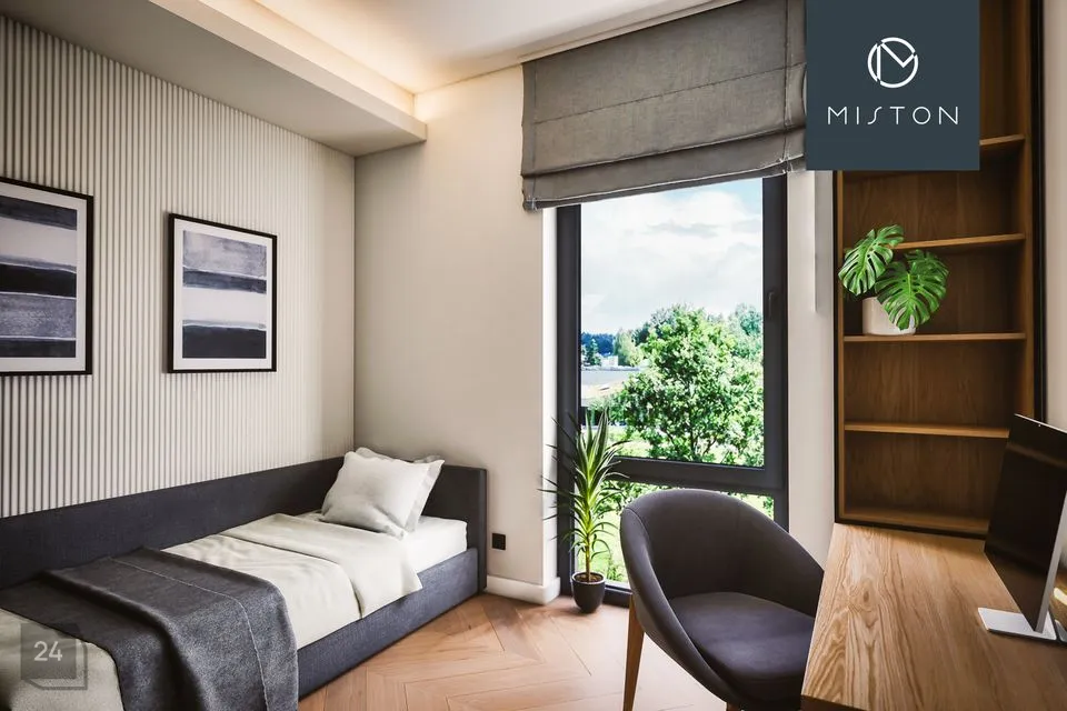 High-quality, long-lasting materials are used for all interiors. Three interior design styles are available for selection. The apartment is made more spacious by high ceilings and triple-glazed, energy-efficient floor-to-ceiling PVC windows. Floors are covered with natural solid wood parquet, and bathrooms are equipped with high-quality sanitary fixtures. Apartments have underfloor heating, heat-recovery ventilation, and cooling readiness. Storage rooms are located on the building’s -1 floor.