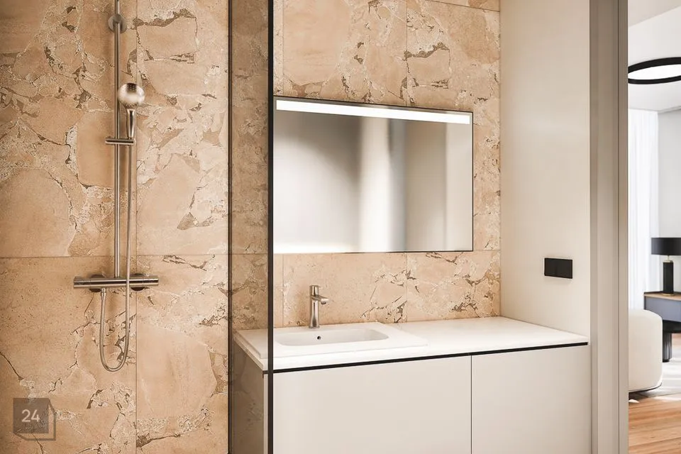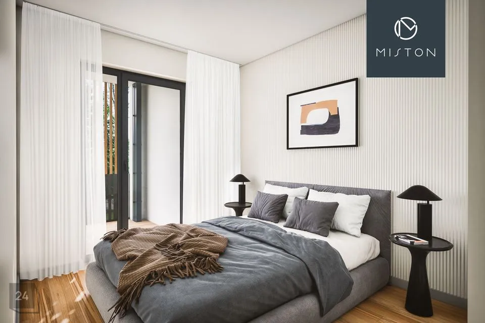 High-quality, long-lasting materials are used for all interiors. Three interior design styles are available for selection. The apartment is made more spacious by high ceilings and triple-glazed, energy-efficient floor-to-ceiling PVC windows. Floors are covered with natural solid wood parquet, and bathrooms are equipped with high-quality sanitary fixtures. Apartments have underfloor heating, heat-recovery ventilation, and cooling readiness. Storage rooms are located on the building’s -1 floor.