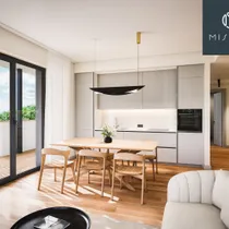 All apartments feature high-quality and durable materials. Buyers can choose between three interior design styles. High ceilings and energy-efficient triple-glazed PVC windows add brightness and spaciousness. The floors are covered with natural solid wood parquet, and the bathrooms are fitted with premium sanitary equipment. Each apartment has water-based underfloor heating, heat recovery ventilation, and cooling readiness. The Bisly smart home system helps to keep electricity and heating costs under control.