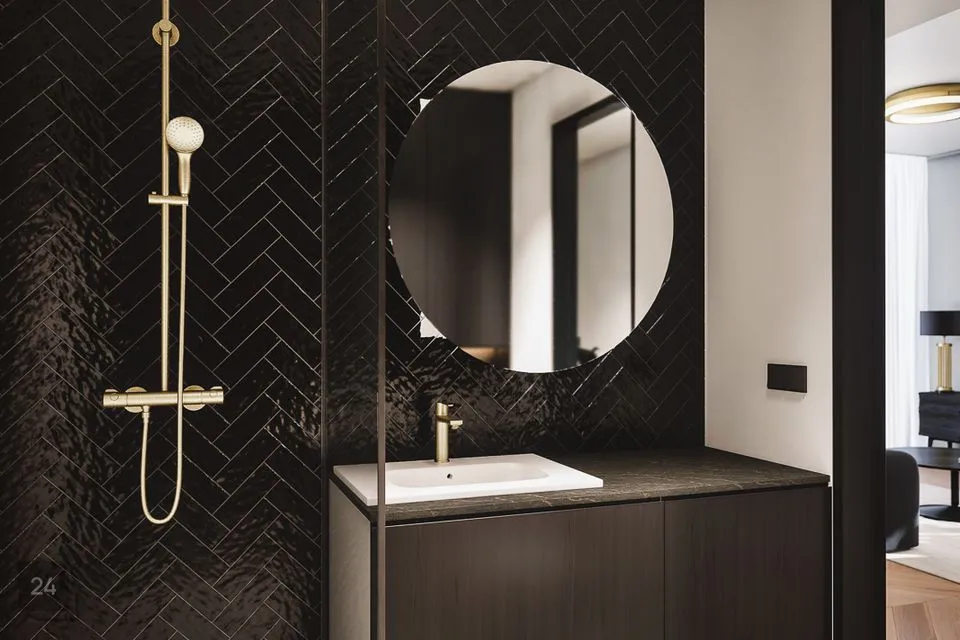 All apartments feature high-quality and durable finishing materials. Buyers can choose between three interior design styles. High ceilings and triple-glazed energy-efficient PVC windows add a sense of spaciousness. The floors are covered with natural solid wood parquet, and bathrooms are equipped with premium sanitary fittings. The apartments are fitted with water-based underfloor heating, heat recovery ventilation, and cooling readiness. The Bisly smart home system helps to keep electricity and heating costs under control.