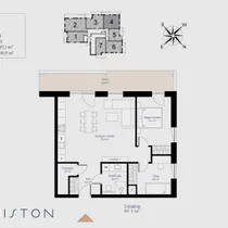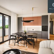 All apartments feature high-quality and durable finishing materials. Buyers can choose between three interior design styles. High ceilings and triple-glazed energy-efficient PVC windows add spaciousness. The floors are covered with natural solid wood parquet, and the bathrooms are equipped with premium sanitary fittings. The apartments have water-based underfloor heating, heat recovery ventilation, and cooling readiness. The Bisly smart home system helps to keep electricity and heating costs under control.