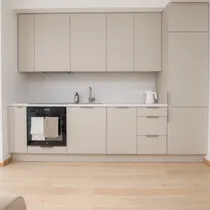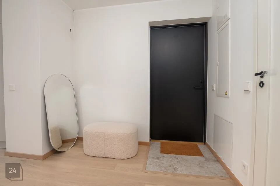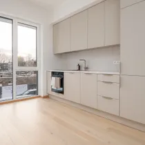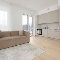 Papiniidu 56-6 is a well-designed 2-room apartment located on the 2nd floor of the building. The apartment features a bedroom, an open-plan living room with kitchen, and a bathroom. Floor-to-ceiling windows open toward the morning and midday sun. The Bisly smart home system helps to keep electricity and heating costs under control.