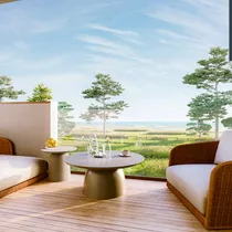 All apartments feature high-quality, durable interior materials. High ceilings and triple-glazed, energy-efficient floor-to-ceiling PVC windows add spaciousness. The living areas have natural solid wood parquet flooring. Bathrooms are equipped with high-quality sanitary ware. The apartments have water-based underfloor heating, heat recovery ventilation, and cooling readiness.