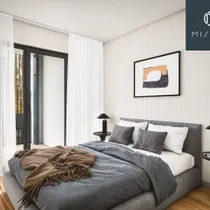 High-quality and durable materials are used in all apartment interiors. Spaciousness is enhanced by high ceilings and triple-glazed energy-efficient floor-to-ceiling PVC windows. Floors are covered with natural solid wood parquet. Bathrooms are equipped with quality sanitary fixtures. Apartments feature underfloor heating, heat-recovery ventilation, and cooling readiness.