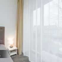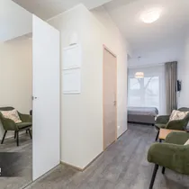 The building is located in a quiet and green Pärnu beach district, just 700 m from the sea and sandy beach. Within walking distance are a water center, tennis hall and paddle courts, grocery stores, updated sea promenade, and recreational areas.