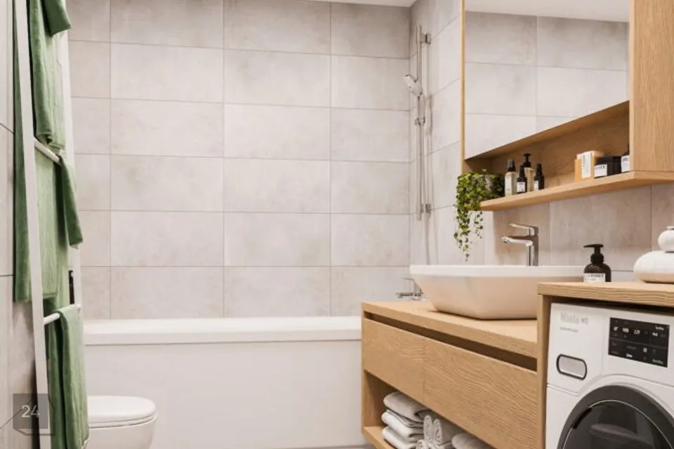 The apartment consists of: hallway, wardrobe, toilet-bathroom, 2 bedrooms, large living room with open kitchen and balcony.